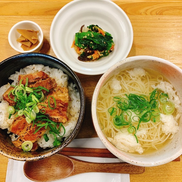 柔らかくで食べ応え十分な角煮丼と、温かいにゅう麺がセットになったボリューム満点のセットです。今月も週替わりの麺は要チェックです!